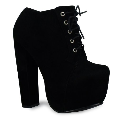 Check Here for Customer Reviews and Buy with Special Price B3D Womens Black Suede Block High Heels Concealed Platform Lace Up Ladies Ankle Boots Shoes Size 5