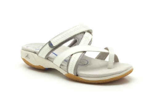 Clarks Womens Isna Dew White Leather Coated Leather Sandals 6.5 UK - The perfect sporty women's sandals for when you need a well constructed look that doesn't compromise on style. Great for walking, the toe post design wraps the foot in white strappy leather and adjusts over the instep for maximum comfort. An easy to slip on and off mule that offers a fabulous, fun fit.