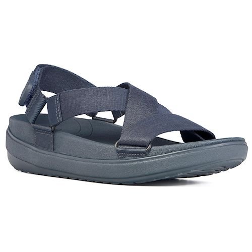 FitFlop Sling Sandal (5, Super Navy) - FitFlop Sling Sandal has a soft cotton criss-cross strap across the upper. An adjustable velcro backstrap allows for a perfect fit Built on FitFlop's cushioned triple density midole for a little extra height and a super cushioned underfoot feel Sizing Advice: FitFlop Sling Sandal is built on FitFlop's mid-width MicrowobbleboardTM midsole, for an average width fit Upper: Fabric / Cotton