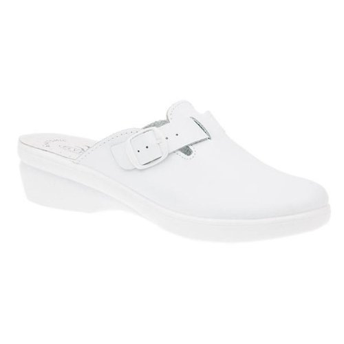 Incredibly practical clog with a smooth leather upper and leather lining and insole and an anatomic sole. Great if you work in the service industry and need a practical shoe you can rely on. The buckle across the top can also be adjusted to an individual fit for your total comfort.