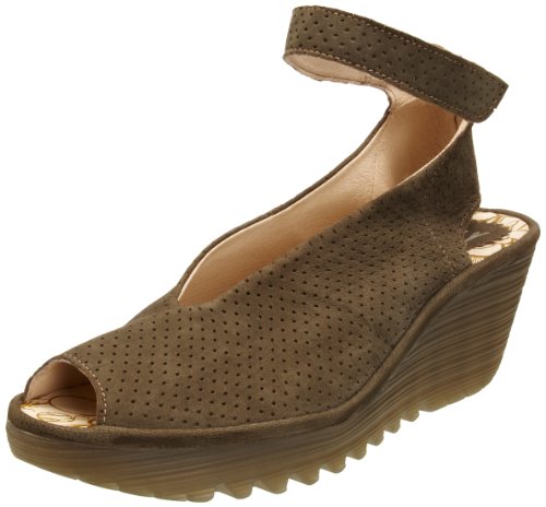 Fly London Women's YalaPerf Khaki Ankle Strap P500376009 7 UK - Add a pop of colour to your wardrobe with Fly London Yala Perf wedged sandals. The wedged heel makes these sandals easy to walk in and they also feature a fashionable velcro ankle strap. They are available in red and khaki green suede so you can pick a colour that suits your style. Fly London Yala Perf are versatile sandals with an quirky look making them a great way to instantly update your wardrobe. Essential Info: Upper: Leather Lining: Pigskin Heel: 6cm Other: Fly London Yal Perf sandals Pro