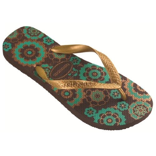Havaianas Spring Dark Brown/Golden Flip Flops - UK 5 - BR 37/38 - Havaianas Top sandal with floral print design