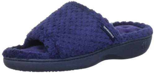 Isotoner Women's Popcorn Open Toe Terry Mule Slippers Dark Navy Slides 95311NAV6 6 UK - Popcorn open toe terry mule featuring our unique Pillowstep tufted insole for added comfort. Also includes extra padding and our Secret Sole® for additional support at the heel, arch and toe. Durable sole. Machine washable.