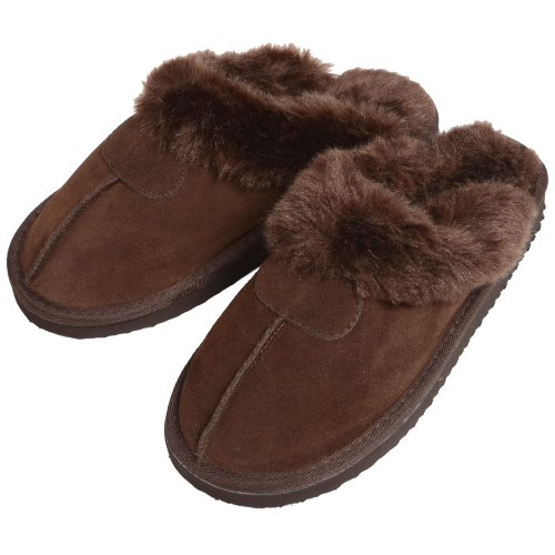 Check Here for Customer Reviews and Buy with Special Price Ladies' EGO Snugg Suede Mule Slippers With Faux Fur Trim & Lining Brown UK 6