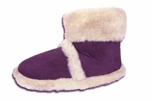 New Ladies Coolers Branded FUR COLLAR Microsuede Textile Upper Fluffy Lined Snugg Boot Slipper 316 Plum UK size 7-8 - Ladies Famous Cooler Brand MicroSuede Slipper Snugg Boot With Warm Faux Fur Lining. Durable Sole