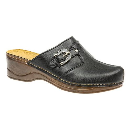Pavers MUY1502 - Black Size 6 UK - Ladies clog with soft wipe clean upper and leather insole. So easy to wear, just slip them on and go and get on with your daily routine. Incredibly practical, great for a working environment too. A decorative buckle to the upper completes the look.