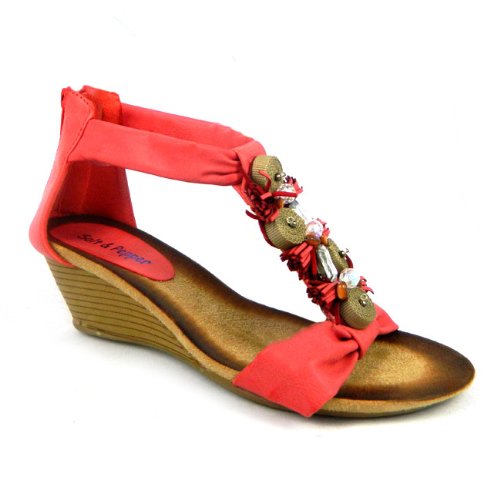 Check Here for Customer Reviews and Buy with Special Price Salt & Pepper CITRINE Womens Synthetic Leather Mid Wedge Sandals - Red, Size 4 UK