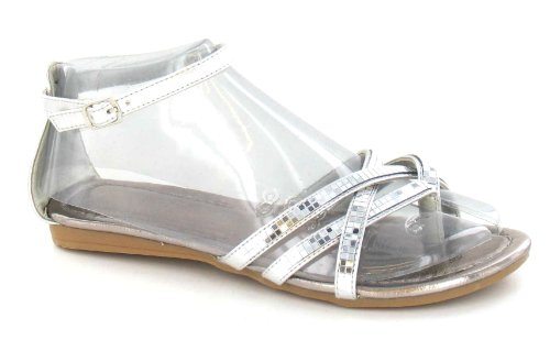 Check Here for Customer Reviews and Buy with Special Price Spot On Flat Mirrored Toepost Sandal / Ankle Straps (Silver, Size 6 UK)