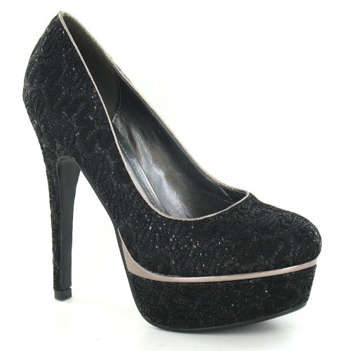 Check Here for Customer Reviews and Buy with Special Price Spot On High Heel Platform Court / Lace Overlay / Glitter (Black, Size 6 UK)
