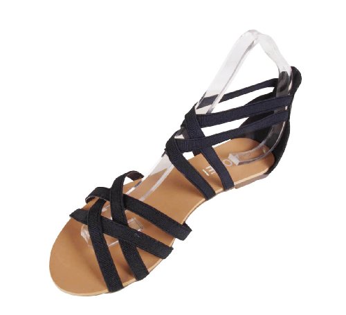 Check Here for Customer Reviews and Buy with Special Price Women's Flat Strappy Elasticated Fit Slip On Gladiator Summer Sandals Black Size 4
