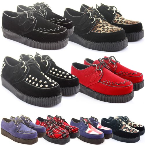 Womens Creepers Lace Up Style Low Wedge Flat Heel Platform Goth Punk Shoes Size - Gorgeous Creepers Available In Black, Black/Leopard, Red, White, Pink and Blue