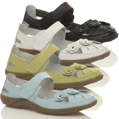 WOMENS LADIES COMFORT WALKING WIDE FLOWER CASUAL SHOES SANDALS SIZE 7 40 - å´ Blue, White, Green or Black