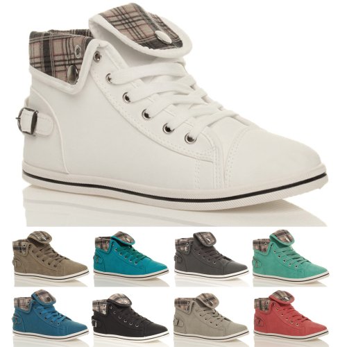 WOMENS LADIES FLAT LACE UP FOLD DOWN CUFF HI TOP BUCKLE PUMPS TRAINERS SIZE 6 39 - å´ Choice Of Colours As Shown Above
