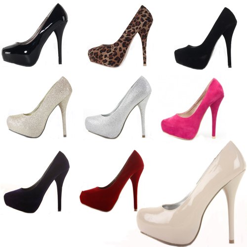 Womens Ladies High Heels Platform Office Work Pumps Stiletto Black Red Blue Silver Gold Pink Blue Wedding Bridal Court Shoes Size - Beautiful High Heels Available in Black, Black patent, Nude, Leopard, Red, Pink, Blue, Gold, Silver and Silver mesh
