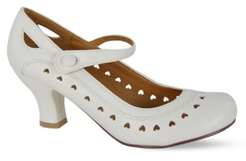 Womens Round Toe Ankle Strap Court Ladies Low to Medium Heel Heart Office Shoe White Size 4 UK - Round Toe Court Shoe. Faux Leather Upper. Ankle Strap with Button Trim. Heart Shaped Inserts. 6.5cm Heel.