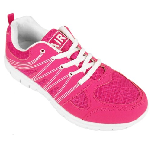 Womens Shock Absorbing Girls Running Trainers Jogging Gym Fitness Trainer Shoe 4 - A stylish multi purpose fitness trainer designed with comfort, support and durability in mind. Synthetic upper with breathable mesh panels. Lace up front. Cushioned insole. Low profile shock absorbing midsole. Flexible traction outsole.