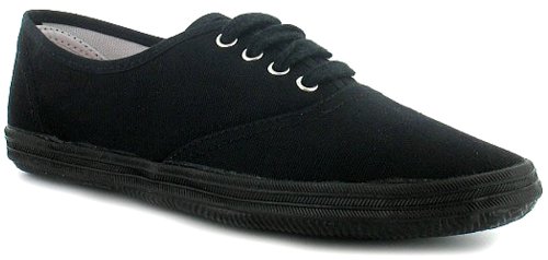 Womens/Ladies Black Canvas Pumps With Rubber Soles, Ideal For School - Black - UK 5 - Platino Spooky 2 Womens Canvas Shoes. Ladies/womans canvas pumps with rubber sole, ideal for school.. Black.